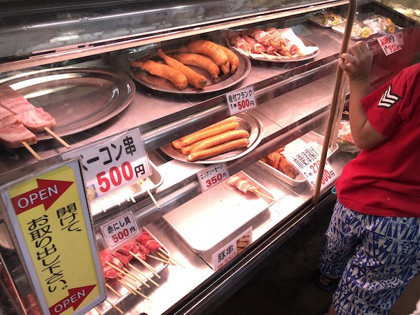 このお店。定食や海鮮丼も食べられるし、たくさん並べられている海鮮物やらお肉など選んでバットに盛り、それもレジに持っていくとお席で海鮮バーベキューができるというシステムになっています。